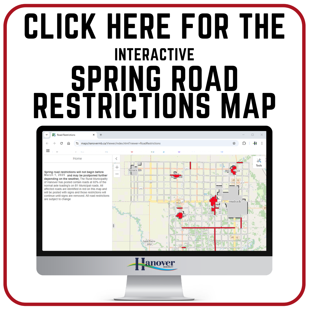 Municipal road restrictions as well as weights and measures legislation are enforced as set out by Municipal By-Law. In the RM of Hanover there are designated "No Truck Routes" and "Spring Road Restrictions".